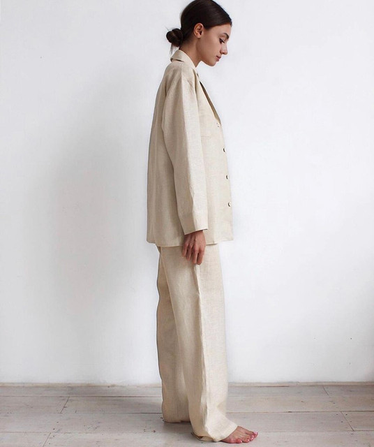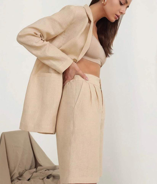 Фотогалерея - Женский льняной костюм: пиджак льняной и брюки, шорты, юбка, плащ льняной.